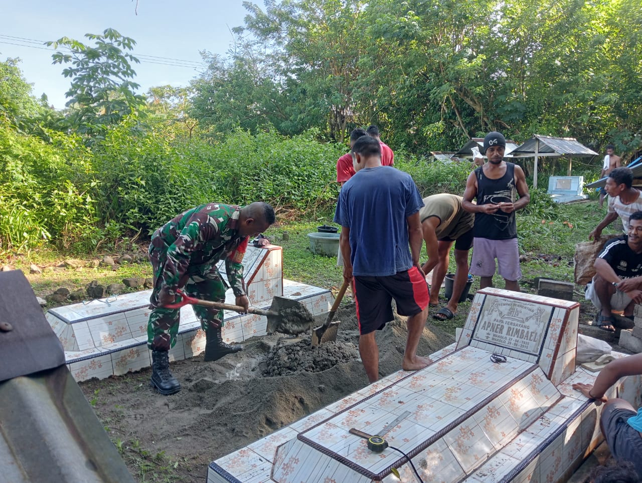 Kegiatan bakti ini dilaksanakan sebagai bentuk kepedulian dan empati Babinsa terhadap warga binaannya yang sedang berduka. Sejak pagi hari, Serda A. Tomatala bersama beberapa warga bergotong royong menyiapkan dan menggali liang kubur, membersihkan area pemakaman, serta membantu proses pemakaman agar dapat berjalan dengan lancar dan tertib.
