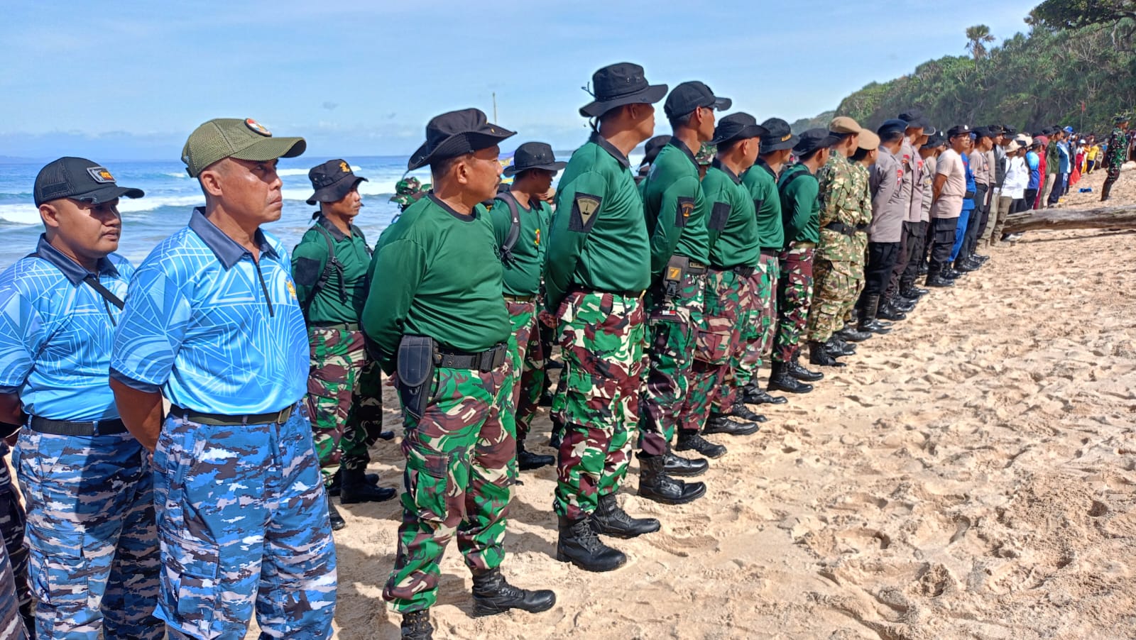 Dispen Kormar (Banyuwangi) PW : Puslatpurmar 7 Lampon melaksanakan kegiatan Karya Bakti Bersih Pantai bersama unsur instansi pemerintah, TNI–Polri, serta masyarakat di kawasan Pantai Pancur, Taman Nasional Alas Purwo, Banyuwangi, Kamis (05/02/2026).
