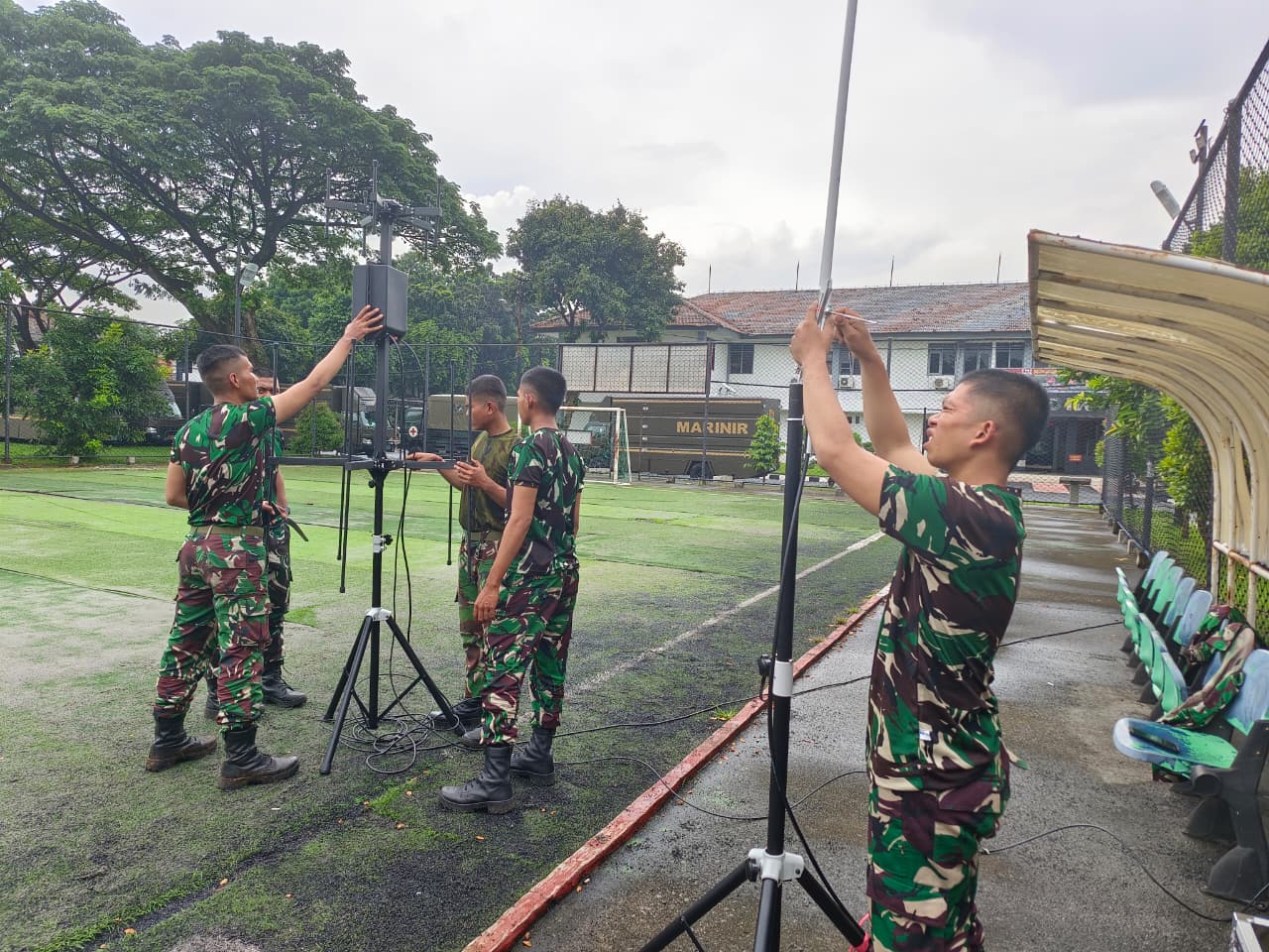 TNI AL, Dispen Kormar, Pasmar 1. Prajurit Batalyon Komunikasi dan Elektronika 1 Marinir (Yonkomlek 1 Mar) melaksanakan pengoperasian Alat komunikasi (Alkom) bertempat di Batalyon Komlek 1 Marinir, Kesatrian Marinir Hartono, Cilandak, Jakarta Selatan, Senin (09/02/2026).