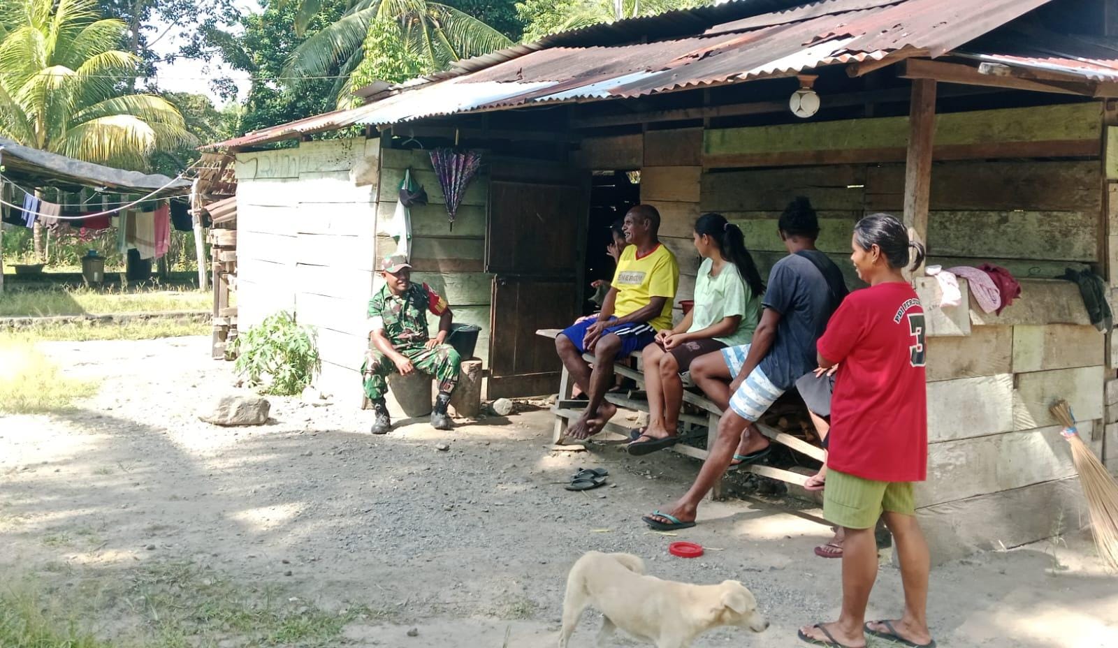 SBB PW Minggu, 22 Februari 2026, Babinsa Desa Musihuwey Koramil 1513-02/Taniwel, Kecamatan Taniwel Timur, Kabupaten Seram Bagian Barat (SBB), Serda Samuel Rerine melaksanakan kegiatan komunikasi sosial (komsos) bersama sejumlah tokoh masyarakat setempat.