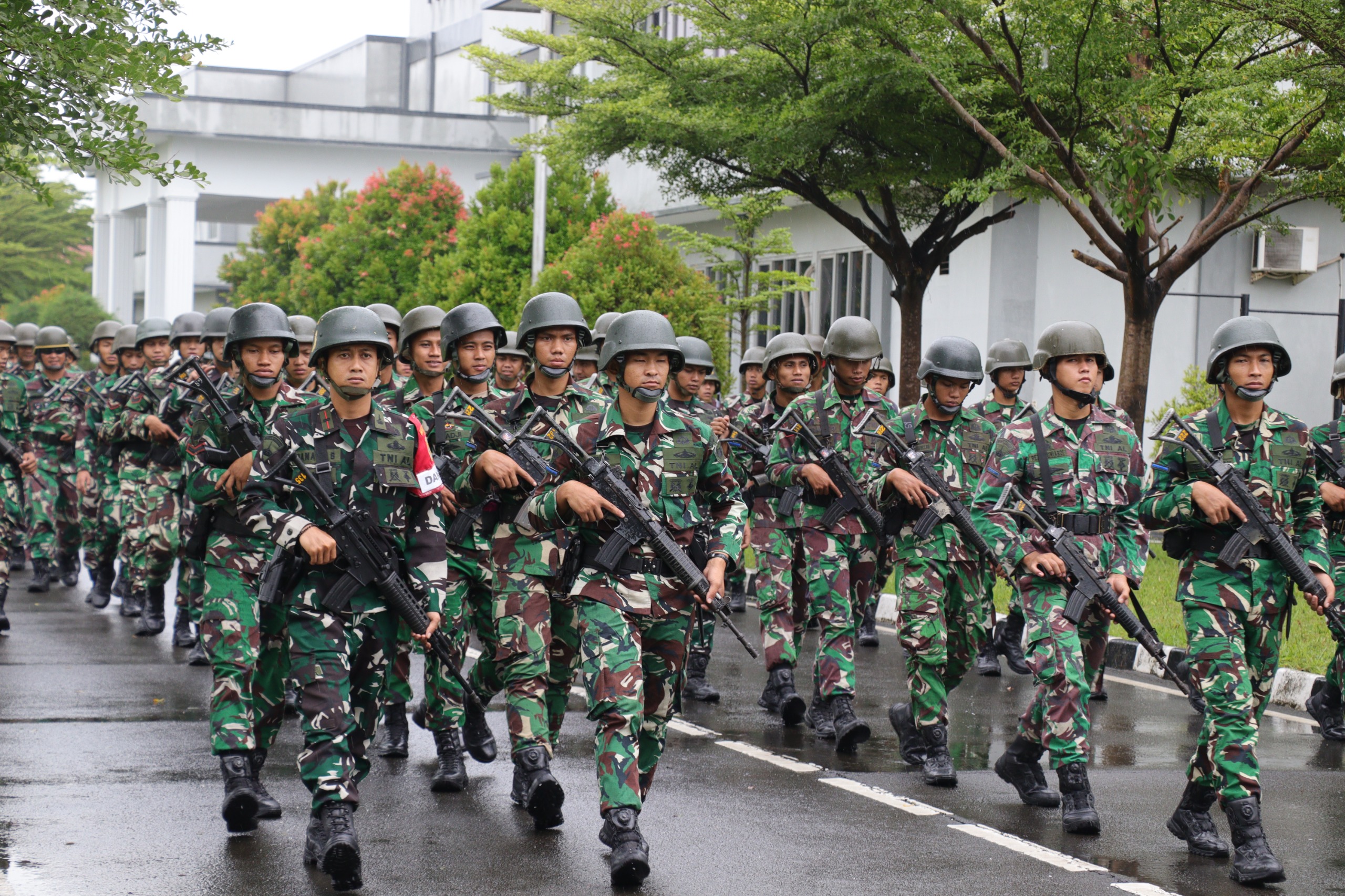TNI AL, Dispen Kormar, Pasmar 1 (Jakarta). Sebagai pasukan khusus TNI Angkatan Laut, prajurit Detasemen Intai Para Amfibi 1 Marinir (Denipam 1 Mar) TNI AL menunjukkan profesionalismenya melalui latihan menembak reaksi yang dilaksanakan di Lapangan Tembak Denipam 1 Kesatrian Marinir Baroto Sardadi Marunda, Cilincing, Jakarta Utara, Senin (23/02/2025). Di tengah cuaca hujan, tidak menyurutkan semangat prajurit Denipam 1 Mar dalam melaksanakan latihan menembak reaksi yang dituntut mampu bergerak taktis sekaligus menembak target secara cepat dan tepat sasaran. Latihan menembak reaksi ini bertujuan untuk mengasah naluri tempur dan melatih fokus prajurit…