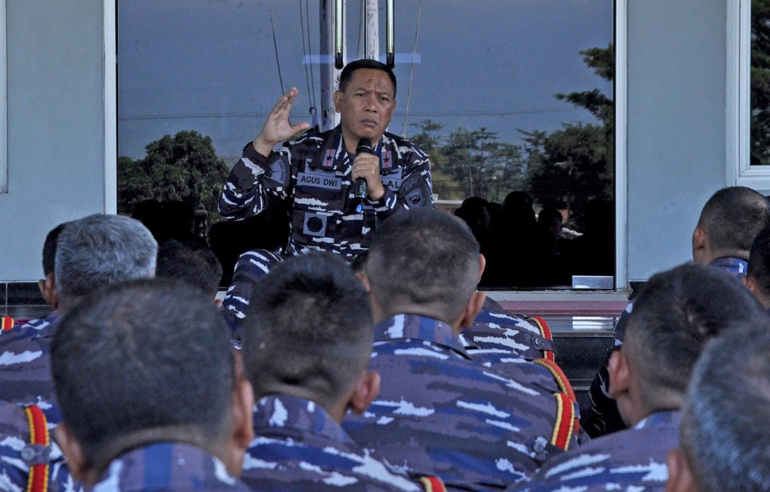 TNI Angkatan Laut, Dispen Kormar (Pasuruan) PW : Komandan Komando Latihan Marinir (Dankolatmar) Brigjen TNI (Mar) Agus Dwi Laksana Putra memberikan jam komandan pada segenap prajurit Denma Mako Kolatmar di depan teras Mako Kolatmar Grati, Pasuruan, Jumat (13/03/2026).