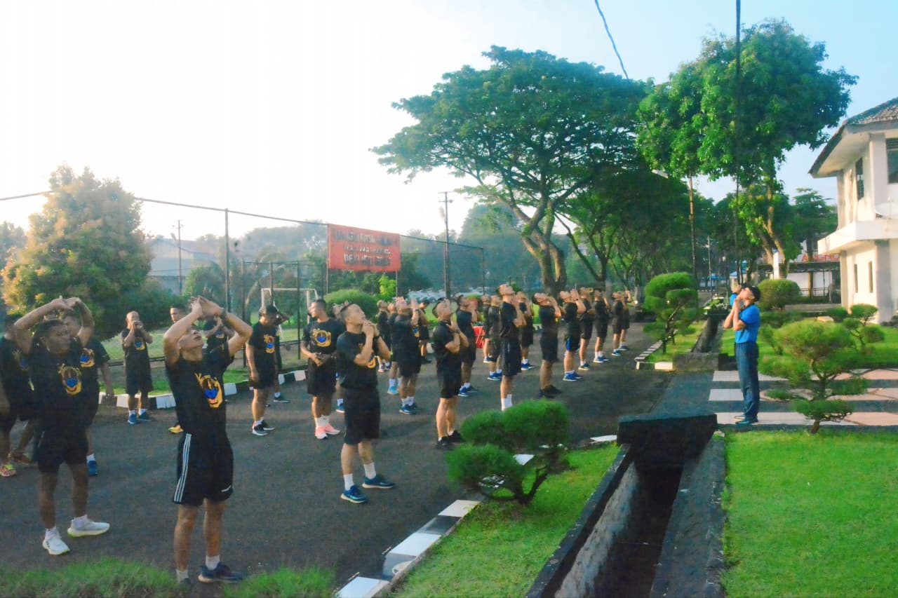 Jakarta, PW: Dispen Kormar, TNI Angkatan Laut (Jakarta). Komandan Resimen Bantuan Tempur 1 Marinir (Danmenbanpur 1 Marinir) Kolonel Marinir Yuyun Susanto, S.E., M.Tr.Hanla., M.M., memimpin langsung kegiatan olahraga bersama para Perwira di lingkungan Menbanpur 1 Marinir yang dilaksanakan di depan Gedung Badik, Kesatrian Marinir Hartono, Cilandak, Jakarta Selatan, Kamis (02/04/2026).