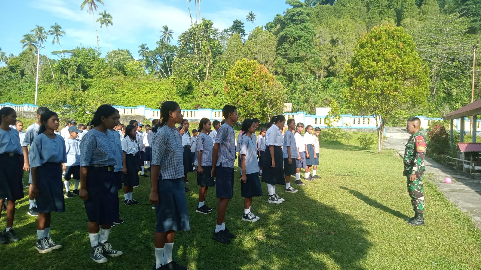 SBB PW Bertempat di Desa Tala, Kecamatan Amalatu, Kabupaten Seram Bagian Barat (SBB), Babinsa Desa Tala Koramil 1513-03/Kairatu, Koptu R. Laturake, melaksanakan kegiatan pelatihan Peraturan Baris Berbaris (PBB) dan tata cara penghormatan kepada siswa-siswi SMPN 6 Amalatu. Kegiatan ini dilakukan sebagai bentuk pembinaan karakter generasi muda sejak dini. Dalam pelatihan tersebut, para siswa diberikan pemahaman serta praktik langsung mengenai gerakan dasar PBB dan tata cara penghormatan yang benar sesuai aturan dan buku petunjuk pelaksanaan yang berlaku. Koptu R. Laturake menyampaikan bahwa tujuan utama dari kegiatan ini adalah untuk menumbuhkan…