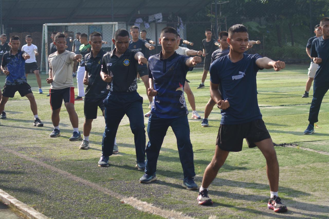 Jakarta, PW: Dispen Kormar, TNI Angkatan Laut (Jakarta). Prajurit Resimen Bantuan Tempur 1 Marinir (Menbanpur 1 Mar) melaksanakan latihan bela diri karate di Lapangan Deki Nur Rifai, Kesatrian Marinir Hartono, Cilandak, Jakarta Selatan, Sabtu (11/04/2026). Latihan ini bertujuan meningkatkan kemampuan fisik, ketangkasan, serta kesiapsiagaan prajurit. Berbagai teknik dasar hingga lanjutan seperti pukulan, tendangan, dan kombinasi gerakan dilatihkan secara terarah guna membentuk prajurit yang disiplin, tangguh, dan profesional. Lebih lanjut, Komandan Resimen Bantuan Tempur 1 Marinir, Kolonel Marinir Yuyun Susanto, S.E., M.Tr.Hanla., M.M., menegaskan bahwa kemampuan bela diri merupakan bagian penting dari…
