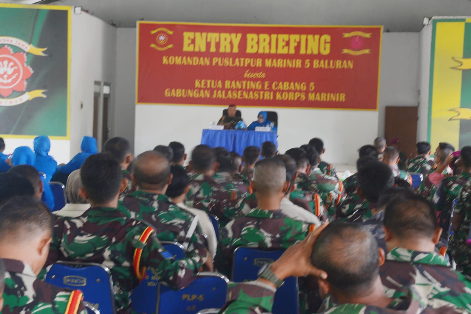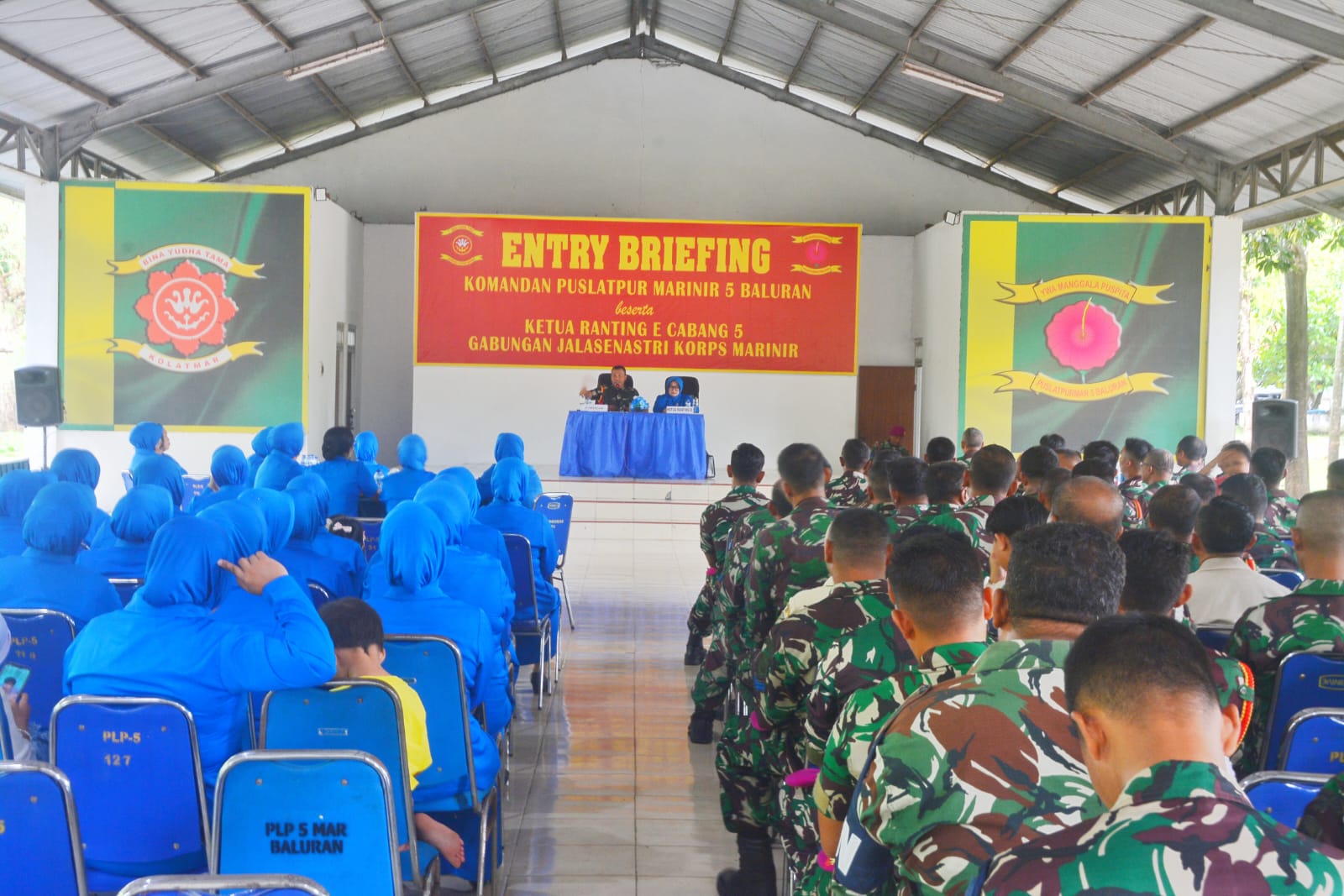 Dispen Kormar, TNI AL, (Situbondo) PW : Komandan Pusat Latihan Pertempuran Marinir (Danpuslatpurmar) 5 Baluran Letkol Marinir Yusman Efendi., M.Tr.Opsla mengawali tugasnya dengan melaksanakan entry briefing bertempat di gedung Balai Prajurit (Bapra) Puslatpurmar 5 Baluran. Situbondo, Selasa (14/04/2026).