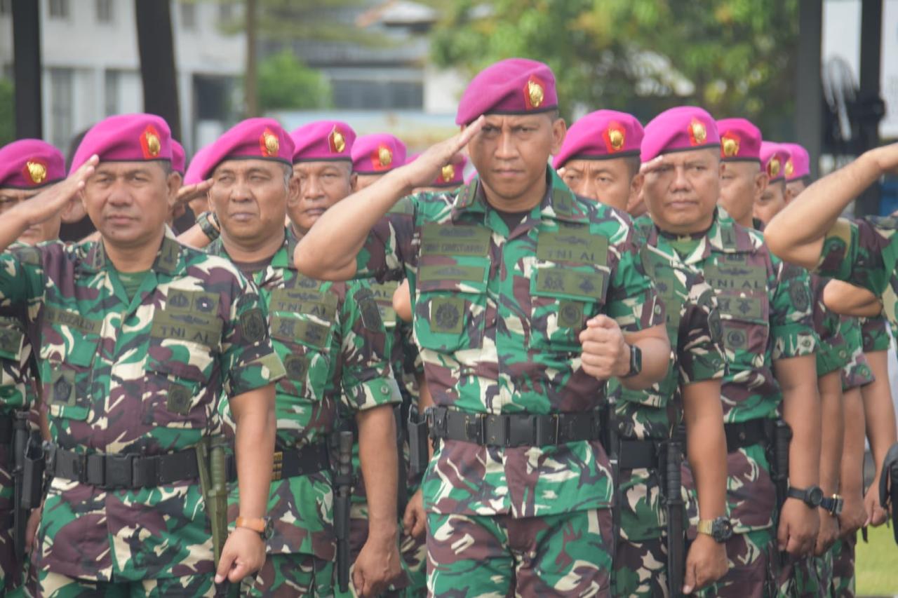 Dalam rangka mempererat silaturahmi serta meningkatkan soliditas dan profesionalisme prajurit, prajurit Kodaeral V menghadiri kegiatan Apel Gabungan yang dirangkaikan dengan Halal Bihalal Idul Fitri 1447 H/2026 M bersama seluruh prajurit Marinir dan Aparatur Sipil Negara (ASN) wilayah Surabaya. Kegiatan dipimpin oleh Panglima Korps Marinir Letjen TNI (Mar) Dr. Endi Supardi di Lapangan Apel Ksatrian Sutedi Senaputra, Karangpilang, Surabaya. Kamis (16/4).