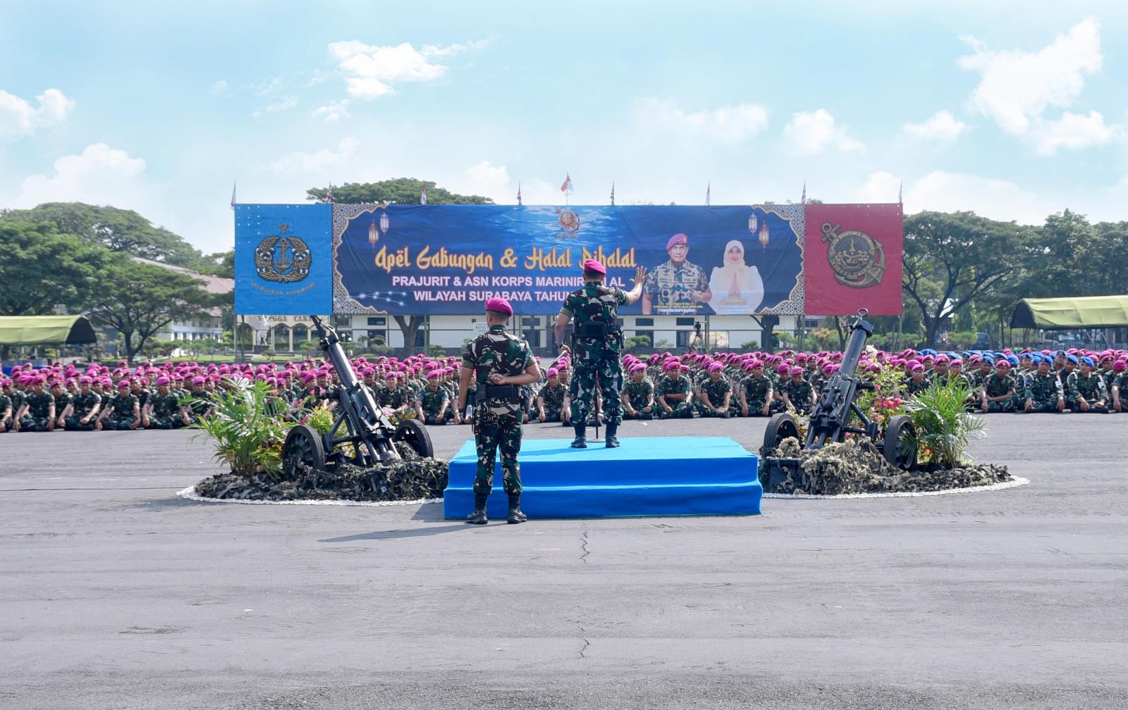 Hal tersebut disampaikan Panglima Korps Marinir (Pangkormar) Letnan Jenderal TNI (Mar) Dr. Endi Supardi, S.E., M.M., M.Tr.Opsla., CHRMP., CRMP., saat memimpin Apel Khusus dan Pembekalan kepada Prajurit dan Aparatur Sipil Negara (ASN) Korps Marinir TNI Angkatan Laut wilayah Surabaya yang digelar di Lapangan Apel Kesatrian Marinir Sutedi Senaputra Karangpilang Surabaya. Kamis (16/04).
