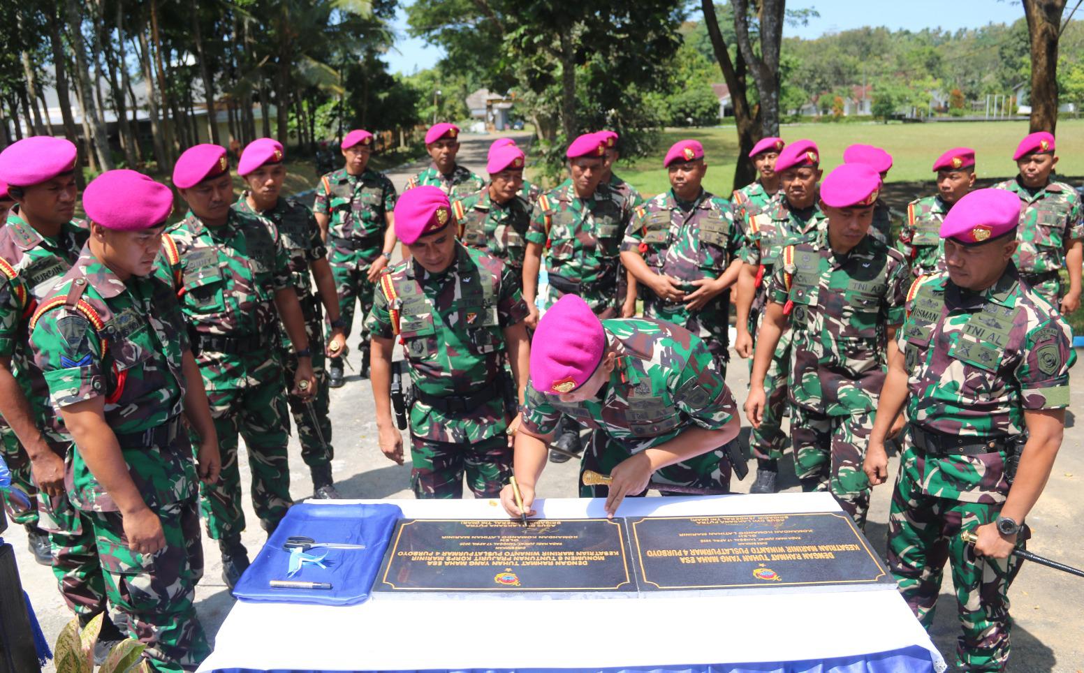 Dispen Kormar, TNI AL (Malang) PW : Komandan Komando Latihan Marinir (Dankolatmar) Brigjen TNI (Mar) Agus Dwi Laksana Putra meresmikan Ksatrian Winanto Puslatpumar 4 Purboyo serta Monumen 6 Tuntunan Prajurit Korps Marinir yang berlokasi di Puslatpumar 4 Purboyo, Desa Bandungrejo, Kecamatan Bantur, Kabupaten Malang, Jumat (17/04/2026).