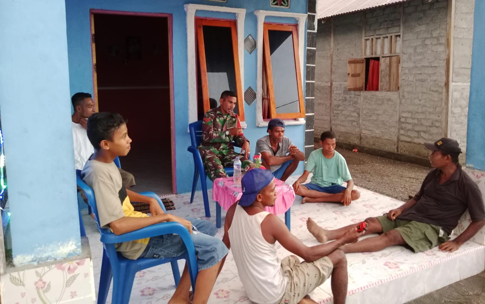 SBB PW , 18 April 2026, Babinsa Desa Uwen Pantai, Kecamatan Taniwel Timur, Kabupaten Seram Bagian Barat (SBB), Koptu Erick Katayane melaksanakan kegiatan komunikasi sosial (komsos) bersama masyarakat.
