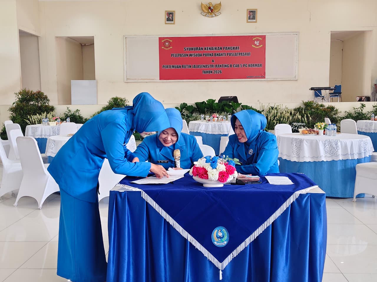 TNI AL, Dispen Kormar (Surabaya) PW : Jalasenastri Ranting B Cabang 5 Gabungan Korps Marinir menggelar pertemuan rutin bulanan bertempat di gedung Olah yudha Puslatpasrat, Gunungsari. Surabaya, Senin.(19/04/2026).