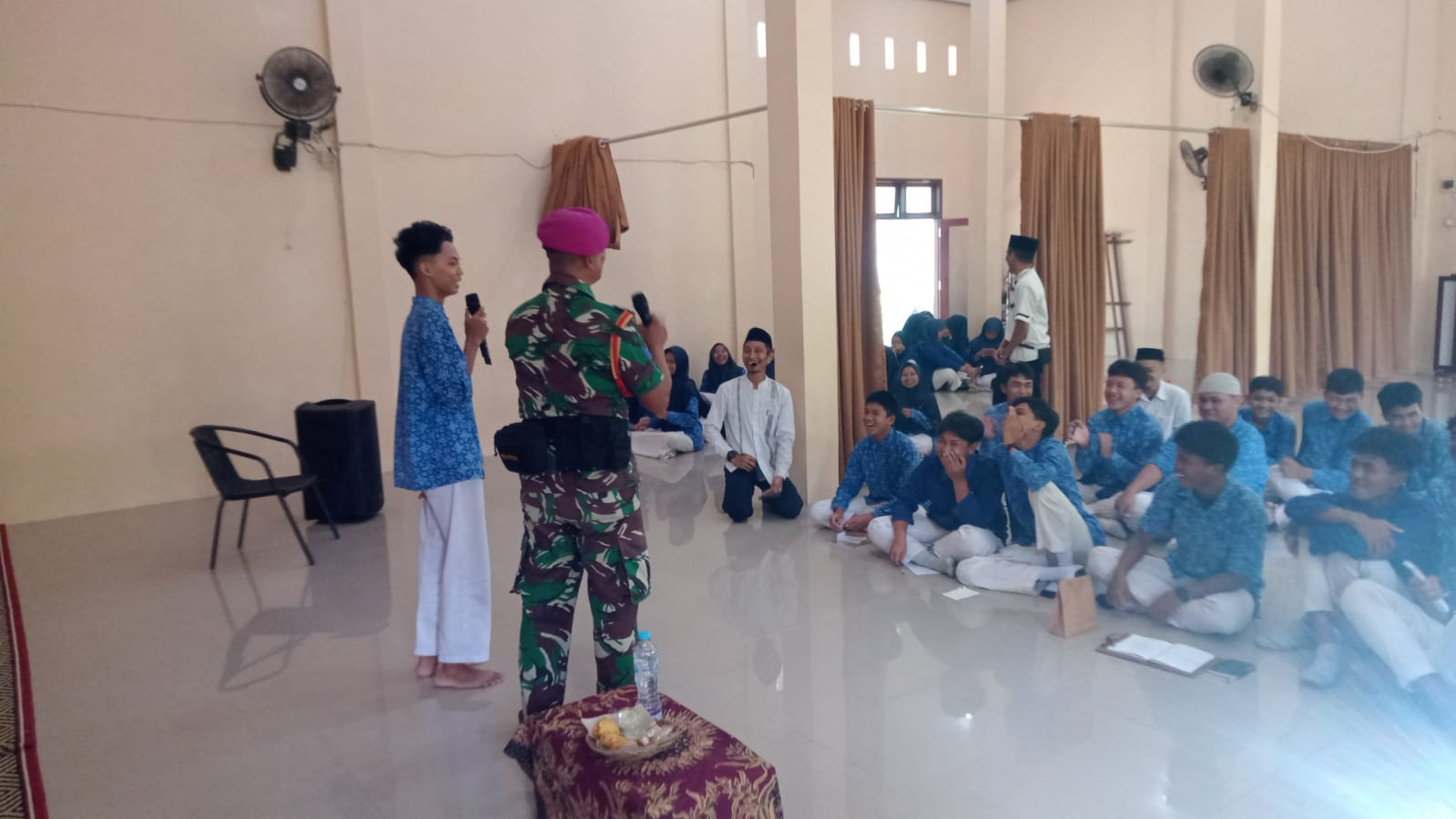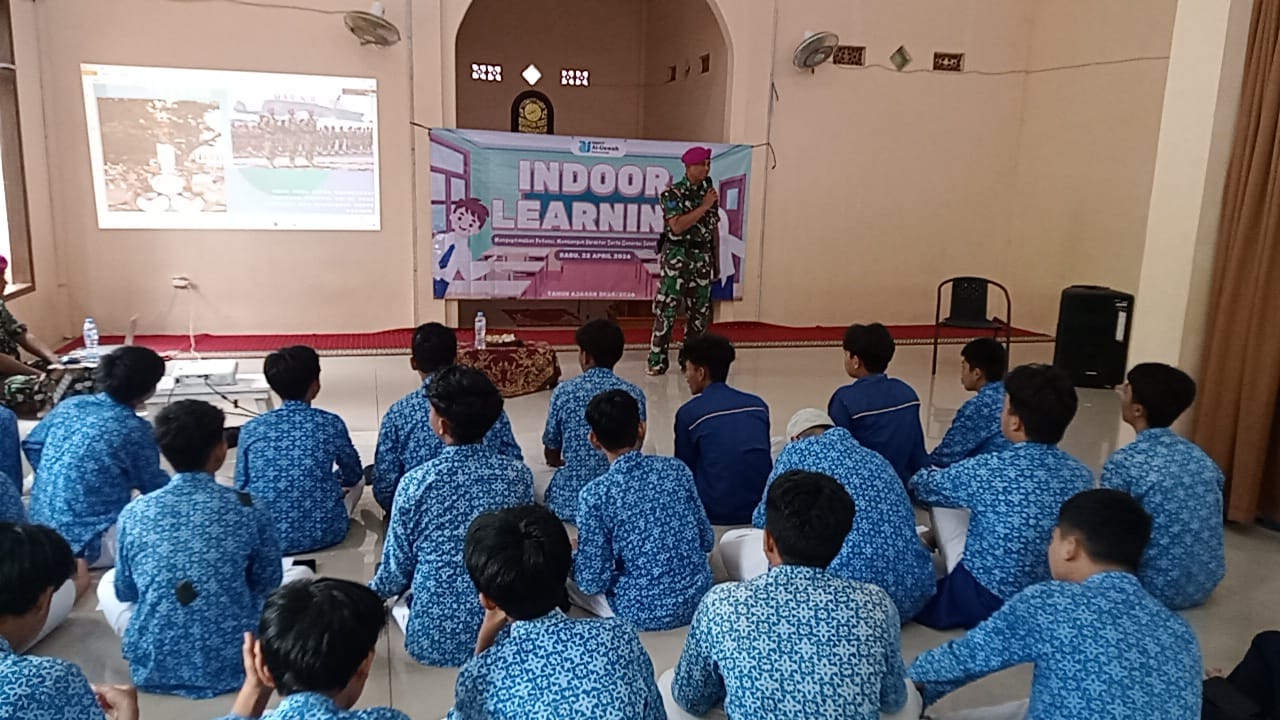 Dispen Kormar, TNI AL (Banyuwangi) PW : Sebagai bentuk kepedulian terhadap generasi penerus bangsa, Puslatpurmar 7 Lampon menggelar kegiatan “Indoor Learning” dengan memberikan materi bertema “Pengenalan Marinir TNI AL, Menumbuhkan Jiwa Nasionalis dan Semangat Bergabung Menjadi Abdi Negara” kepada siswa-siswi SMP Islam Terpadu Al Uswah Banyuwangi, Rabu (22/04/2026).