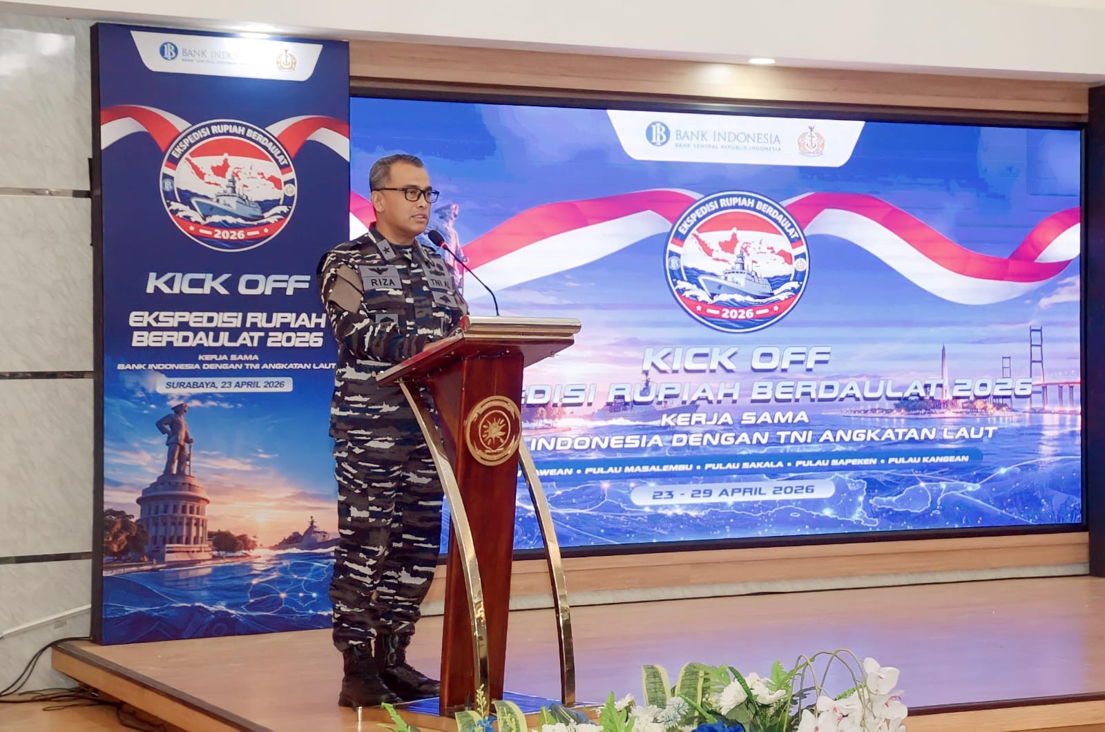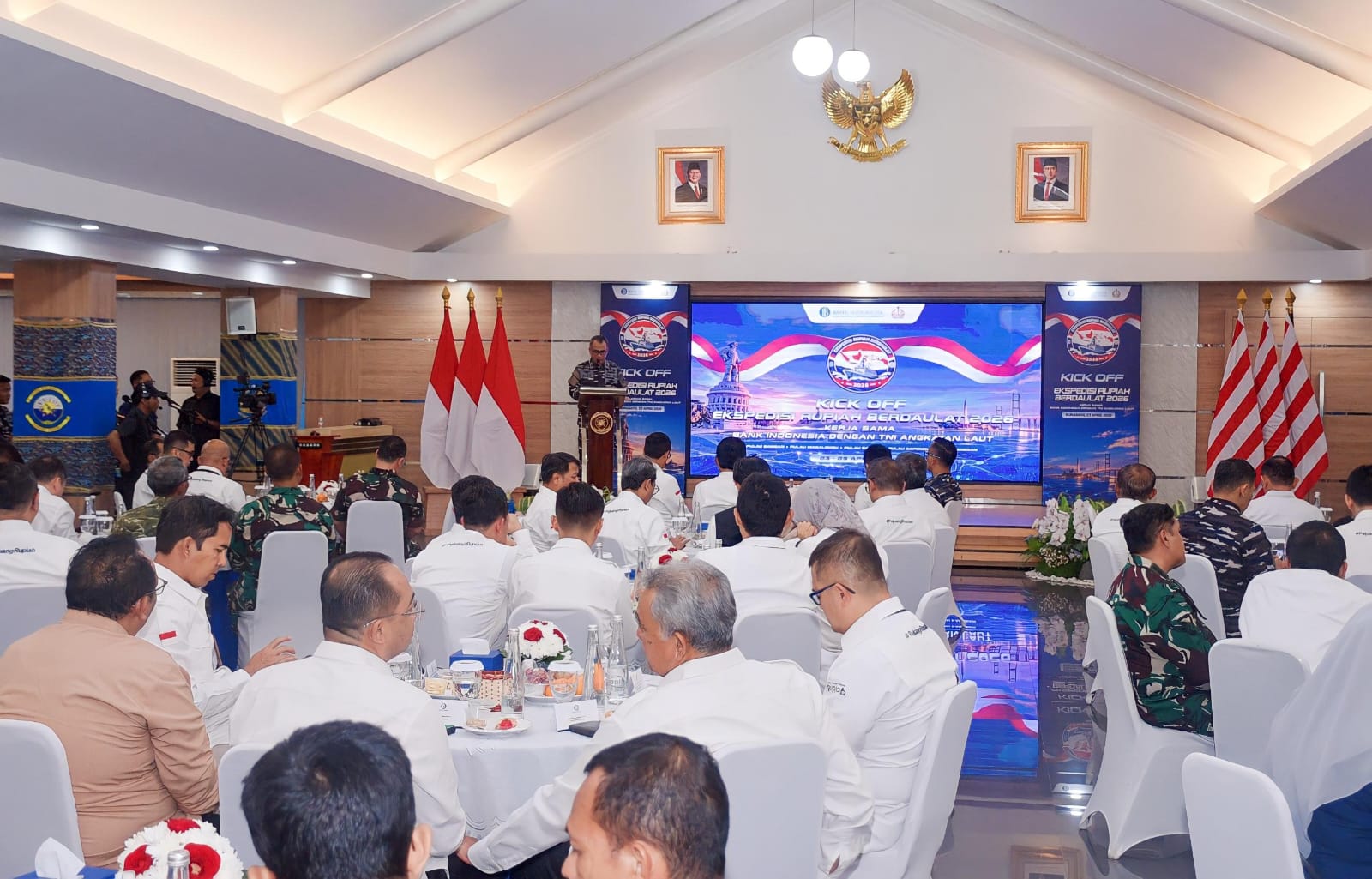 Kegiatan ini dihadiri oleh Wakil Asisten Operasi Kasal Laksma TNI Mochammad Riza, S.E., M.Tr.Opsla., Sekretaris Daerah Provinsi Jawa Timur Adhy Karyono, A.KS., M.A.P., Kaskoarmada II Laksma TNI Agam Endrasmoro, para pejabat Bank Indonesia, pimpinan BI Korwil se-Jawa, serta jajaran TNI-Polri wilayah Surabaya. Kehadiran lintas sektor ini mempertegas bahwa menjaga kedaulatan bukan hanya tugas militer, namun tanggung jawab bersama seluruh elemen bangsa.
