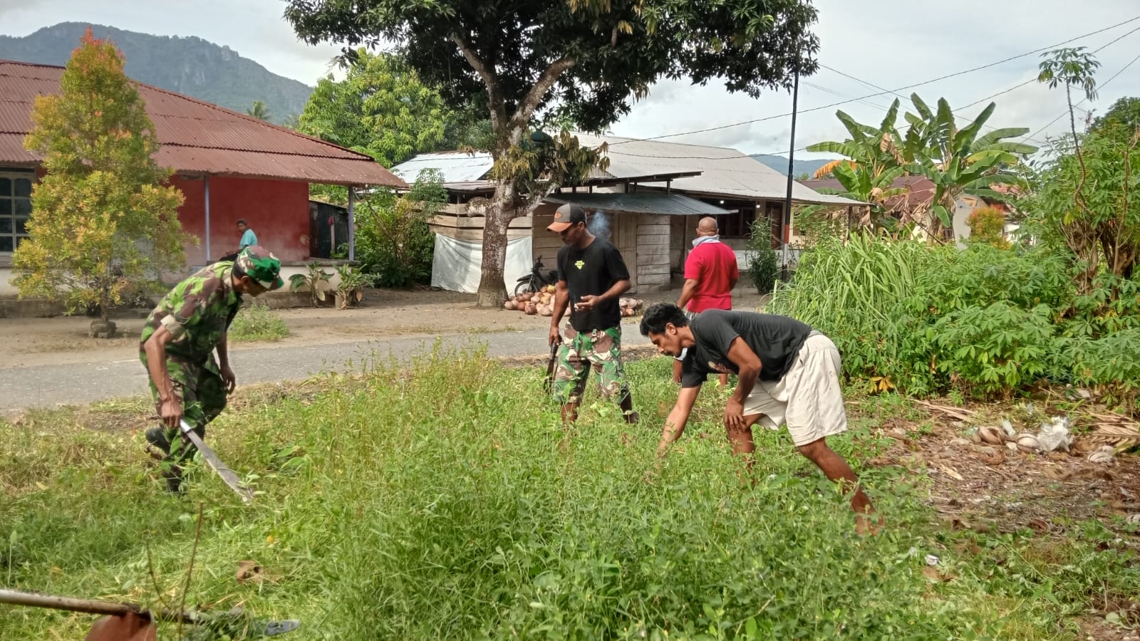 SBB PW Dalam upaya menjaga kebersihan dan kesehatan lingkungan, Babinsa Desa Taniwel, Kecamatan Taniwel, Kabupaten Seram Bagian Barat (SBB), Serka Simon Kaya melaksanakan kegiatan bakti bersama masyarakat setempat, Kamis (23/04/2026).
