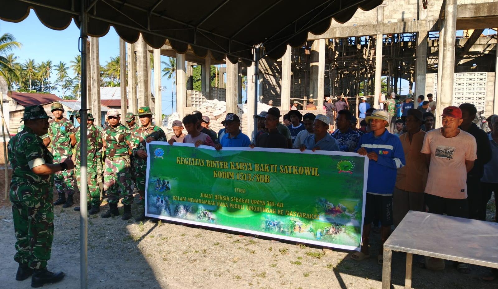 SBB PW Dalam rangka kegiatan Jumat Berkah, Kodim 1513/SBB melaksanakan karya bakti pengecoran Mesjid Al Muhajirin yang berlokasi di Dusun Waiyoho, Desa Kawa, Kecamatan Seram Barat, Kabupaten Seram Bagian Barat, Jumat (23/04/2026).