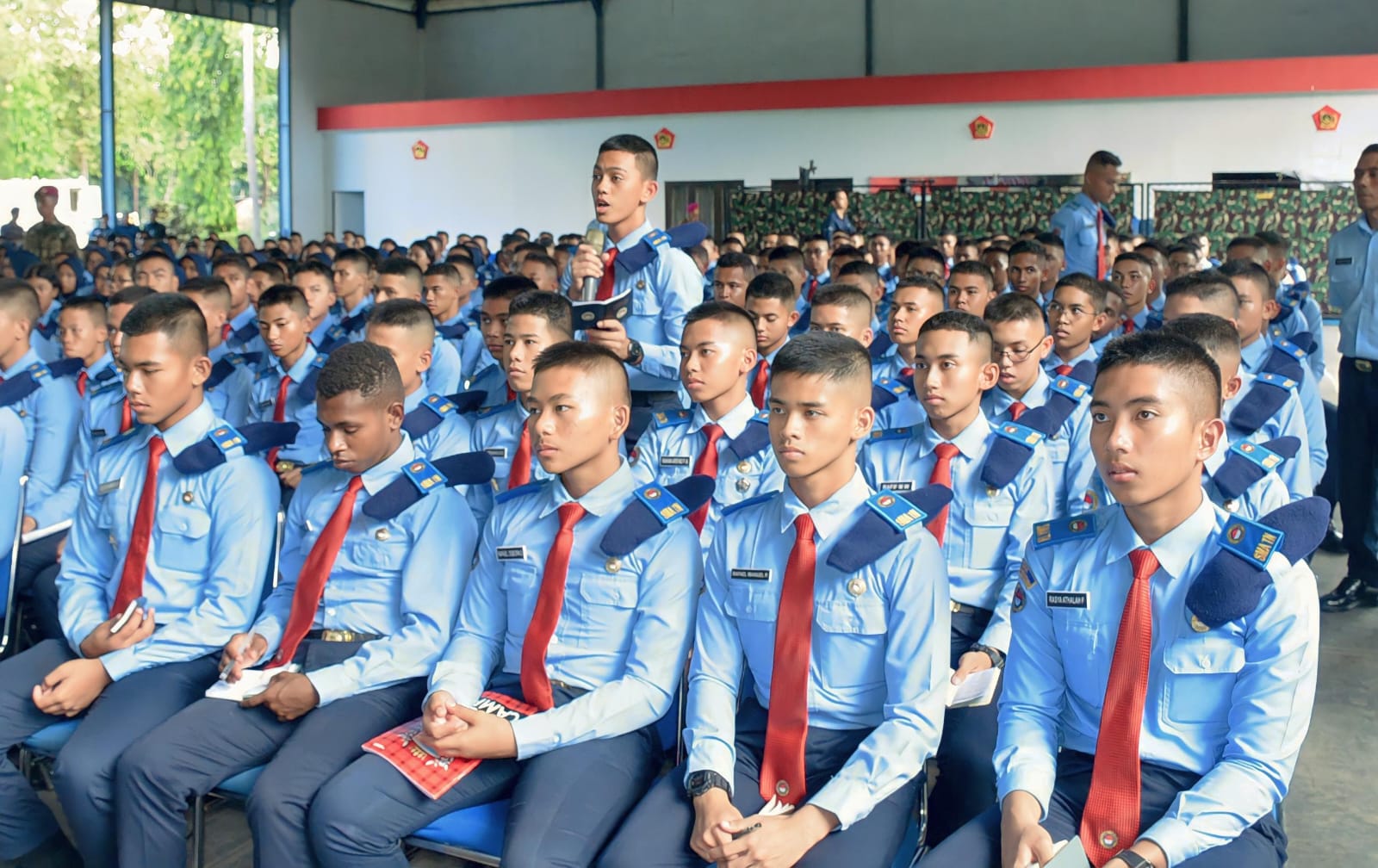 Dispen Kormar TNI Angkatan Laut (Surabaya) PW : Komandan Pasmar 2 Mayjen TNI (Mar) Dr. Oni Junianto, memberikan pembekalan kepada siswa-siswi SMA Taruna Nusantara Kampus Malang, di Indoor Sport Kesatrian Marinir Sutedi Senaputra, Karangpilang, Surabaya, Jumat (24/04/2026).