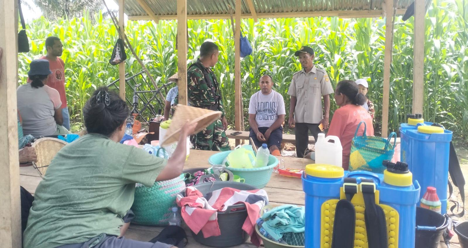 SBB PW Selasa, 28 April 2026, Babinsa Desa Walakone, Kecamatan Taniwel Timur, Sertu Toni Tasane melaksanakan kegiatan komunikasi sosial (komsos) bersama masyarakat, khususnya kelompok tani di Desa Walakone.