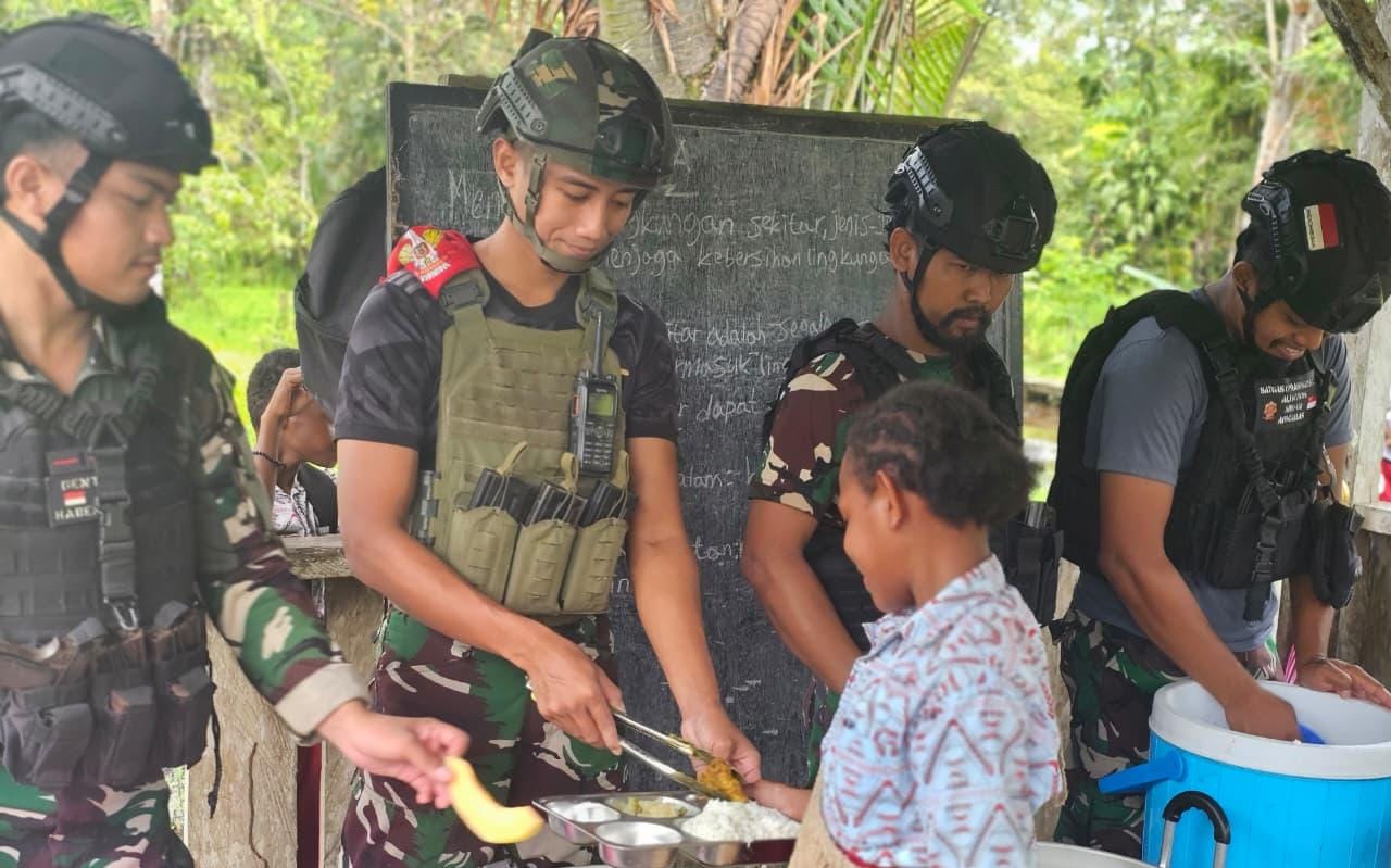 Papua PW 22 Oktober 2025 – Di tengah tugas menjaga keamanan perbatasan, Satuan Tugas Pengamanan Perbatasan (Satgas Pamtas) Mobile Yonif 733/Masariku menunjukkan sisi humanisnya dengan menggelar program “Masariku Peduli Gizi” di Sekolah Dasar (SD) Rimba YPPK Yan Smith Mumugu 2, Mumugu, Papua.