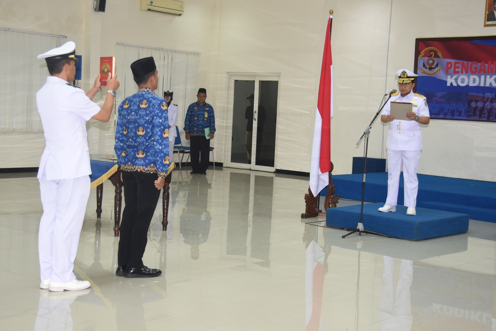 Surabaya, 1 November 2023, —– Sebanyak 19 Pegawai Negeri Sipil (PNS) Komando Pembinaan Doktrin, Pendidikan dan Latihan TNI Angkatan Laut (Kodiklatal) resmi melaksanakan pengambilan sumpah sekaligus pelantikan sebagai PNS baru di jajaran Kodiklatal Tahun 2023 yang dpimpin oleh Direktur Umum (Dirum) Kodiklatal Laksma TNI Dedy Junaidi yang mewakili Komandan Kodiklatal, Letjen TNI Marinir Nur Alamsyah, bertempat di Gedung Betelgues Pusdiklapa Kodikopsla Kodiklatal, Bumimoro Surabaya. Rabu, (01/11/2023). Adapun 19 PNS Kodiklatal yang baru terdiri dari 15 PNS Wanita dan 4 PNS Pria. Pelantikan dan Pengambilan Sumpah Janji PNS Kodiklatal diharapkan terpatri…