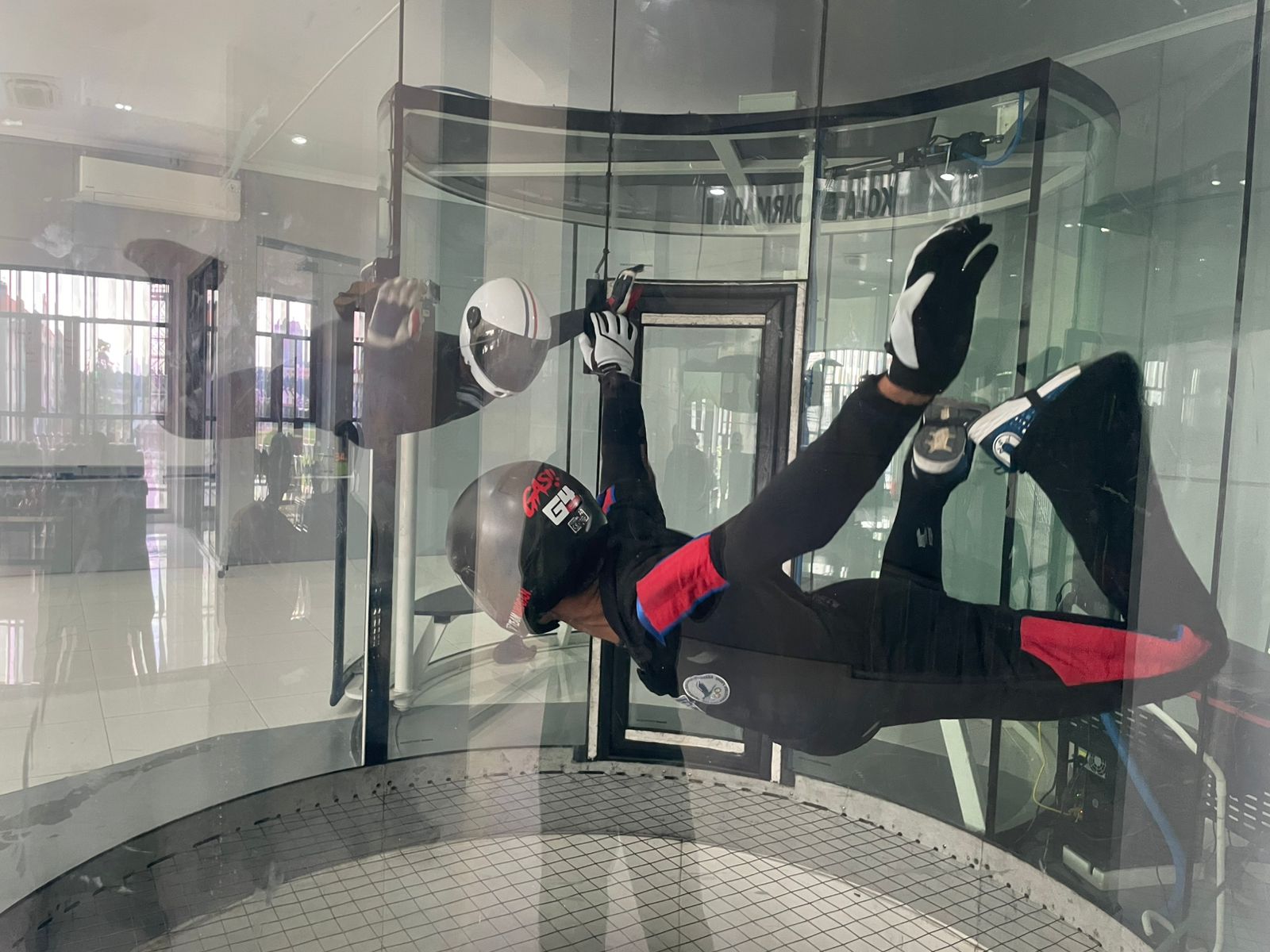 TNI AL. Pasmar 1. Dalam rangka meningkatkan kemampuan aspek udara, prajurit Batalyon Intai Amfibi 1 Marinir (Yontaifib 1 Mar) melaksanakan latihan pelayangan di udara menggunakan fasilitas wind tunnel yang bertempat di Sky Diving Simulator Komando Latih Armada RI, Sunter, Jakarta Utara, Kamis (26/6/2025). Kegiatan dimulai dengan pemanasan dan safety briefing serta penyampaian materi latihan oleh Jumping Master. Wind tunnel merupakan fasilitas yang dirancang untuk mensimulasikan kondisi terjun payung atau kegiatan lain yang melibatkan pergerakan udara. Dengan menggunakan fasilitas ini, latihan dapat dilaksanakan lebih aman dan resiko yang lebih kecil, peningkatan…