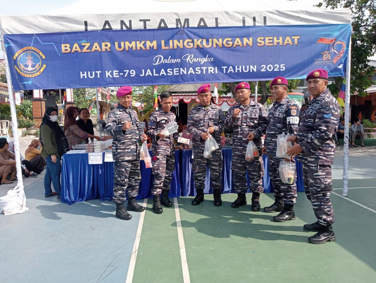 TNI AL, Pasmar 1. Dalam rangka memperingati Hari Ulang Tahun (HUT) ke-79 Jalasenastri, prajurit Hiu Perkasa Batalyon Marinir Pertahanan Pangkalan (Yonmarhanlan) III Jakarta turut serta menghadiri kegiatan Bazar UMKM dan Lingkungan Sehat yang digelar di Lapangan Amigos, RW 01 Komplek TNI AL Kodamar, Kelapa Gading, Jakarta Utara. Selasa (5/8/2025) Berbagai stan UMKM turut memeriahkan acara dengan menampilkan produk-produk unggulan mulai dari makanan khas, kerajinan tangan, hingga produk ramah lingkungan. Selain itu, kegiatan pemeriksaan kesehatan gratis dan edukasi lingkungan menjadi bagian penting dalam memupuk kesadaran hidup sehat di tengah masyarakat. Prajurit…